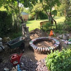 Ecobrick nature pond is a earth garden project in Hampstead Norreys, West Berkshire, England, United Kingdom. The project is made from 250 ecobricks, resulting in the sequestration of approxamitely 60 kg of plastic.